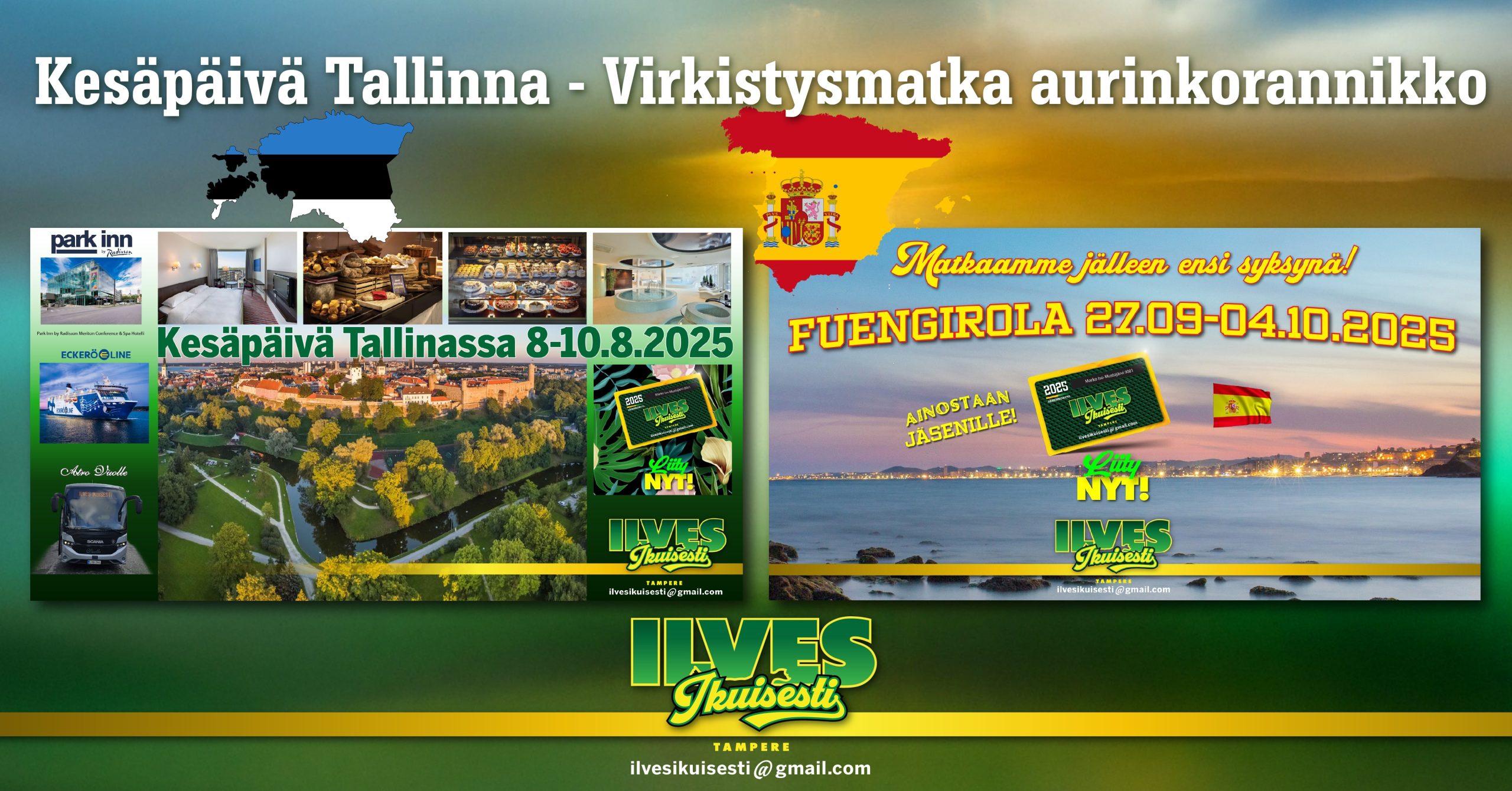 Loppukesästä Tallinnaan ja alkusyksystä Fuengirolaan 27.1.2025 ILVES IKUISESTI RY loppukesästä Tallinnaan ja alkusyksystä Fuengirolaan Ilves Ikuisesti yhdistyksen jäsenten on jälleen mahdollista Lue lisää »