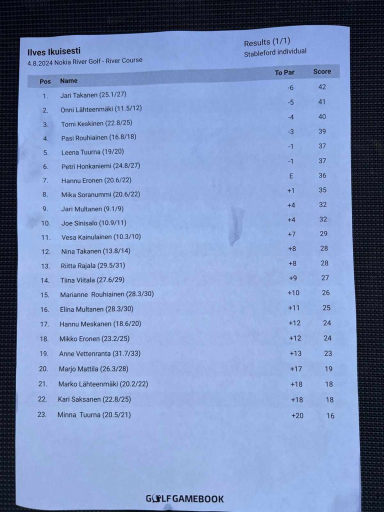 Kisan isäntänä toimi Pasi Rouhiainen itseni ollessa pois. Pasi on kuvassa vasemmalta ensimmäinen, oikein paljon kiitoksia. Kiitoksia myös oikein paljon Nokia River Golf.