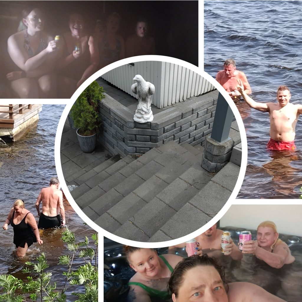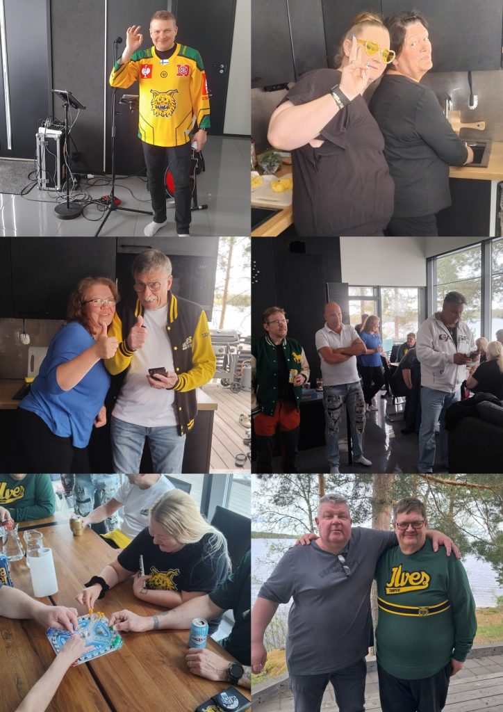 Juhlat jatkuivat karaoken merkeissä ja päivän iskelmätähdesi nousikin Päivi ja illan Vippe. Päivän aikana nautittiin herkulliset Hakasen mansikkakakkukahvit ja illalla herkuteltiin Timon grillaamilla lihoilla, kanoilla ja makkaroilla sekä Marjan & Riitan valmistamalla salaatilla. Poreallas ja huvilasauna olivat myös juhlaväen kovassa käytössä aina pikkutunneille asti. Kaikki kiva kuitenkin päättyy aina aikanaan ja näin heille, jotka eivät yöksi jääneet, tuli paluukyyti hakemaan puoliltaöin vieden juhlijat keskustorille.