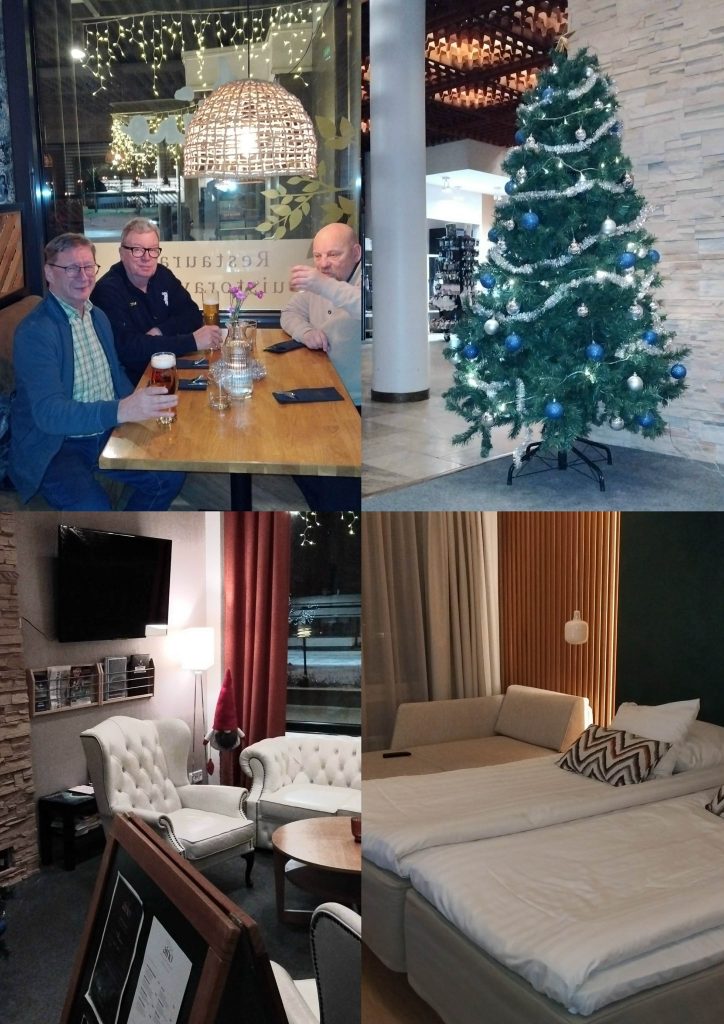 Ensimmäinen ilta sujui oikein hyvin ruokaillen ja iltaa istuen hotellin ravintolassa sekä aulan tiloissa. Mukava oli myös Ilveksen joukkueenjohtajan Timo Peltomaan, huoltaja Janne Janssonin sekä maalivahtivalmentaja Markus Korhosen kanssa jutustella. Oikein mukava yhteensattuma oli majoittuminen Ilveksen joukkueen kanssa samassa hotellissa. Itse ottelupäivänä aamiaisen jälkeen lähdimme sillan toiselle puolelle Ruotsiin ja Haaparantaan ostoksille. Sieltä palattuamme osa kävi saunomassa ja osa huilasi, kuten itsekin ennen Luulajaan lähtöä.