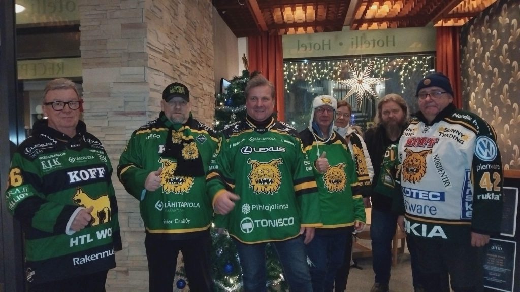 Keskiviikko aamuna aamiaisen jälkeen kello 10 lähdimme kohti Tamperetta, jossa olimme ennen ilta seitsemää. Hieno matka kokonaisuudessaan, lukuun ottamatta aamulla tällä kertaa minun liukastumistani, jossa oli todella lähellä käydä pahasti. Muistoksi jäi todella kipeä ranne ja vielä tätä kirjoittaessa täytyy kirjoittaa vasemmalla kädellä. Kuitenkin ottelun päätyttyä 3–2 tappioon, uskon kotiottelussa voittoon ja sitä seuraavan jälleen seuraava CHL-matkamme. Silloin ovat jo välierät ja tammikuussa vastustajana hyvin todennäköisesti Rauman Lukko. Iso iso kiitos kaikille mukana olleille sekä Atro Vuolle Oy / Jirille