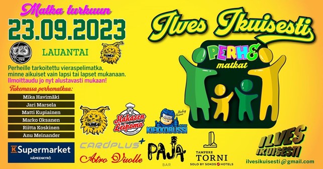 23.09.2023 oli päivä, joka jää historiaan sillä tehtiinhän ensimmäinen Ilves Ikuisesti perhematka, joka oli tarkoitettu vain lapsiperheille. Mukaan aikuiset eli lapsien vanhemmat sekä isovanhemmat pääsivät vain, jos heidän lapsi tai lapset olivat matkalle ilmoittautuneet mukaan.