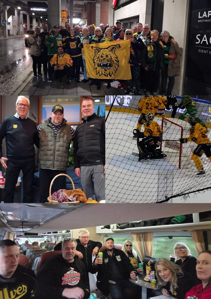31.10-01.11. Lappeenrannassa tunnelmaa ei puuttunut ja hotellilla tapasimmekin ennen ottelua Raipen, sekä joulujuhlissamme kunniajäseneksi kutsutun Lasse Laukkasen. Itse pelillisesti SaiPa näytti kaapin paikan Ilveksen jäädessä jalkoihin 5–2 numeroin. Hotelli vieraspelimatkamme meni totutusti tappiosta huolimatta hienosti SOK Lappeessa, joka niin tutuksi ja loistavaksi hotelliksi on vuosien varrella todettu. Matkalta lauantaina 01.11 palattuamme suuntasikin väki Nokia Areenaan KalPa-otteluun, jossa haavoihin tuli parannusta KalPan kaaduttua samoilla numeroilla.