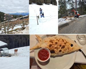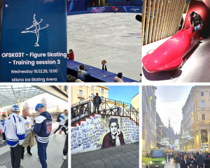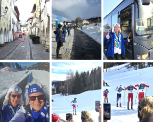 Vuokrasimme auton Milanon keskustasta ja ajoimme sillä lauantai-aamuna  300 km Alppi-alueelle.  Kova liikenne, paljon rekkoja, 2-5 kaistaista moottoritietä ja tietulleja oli runsaasti. Yövyimme 10 päivää  lähellä Tesero/Val di Fiemmen hiihtostadionia, jossa kävimme useita kertoja ja  Anterselvan ampumahiihtostadionilla oltiin 3 päivänä.    Olin mukana Milano Cortina 2026 vapaaehtoishaussa,  joka alkoi jo 2024 syyskuussa ja kesti noin 17 kuukautta!  Sain tietää tarjotuista työvuoroista vasta päivää ennen lentoa Milanoon lentämistä!  Val Di Fiemme/Teseron volunteer-toimistossa käytiin asiaa hyvässä yhteishengessä läpi, mutta valitettavasti työvuorot osuivat juuri väärille päiville ajatellen majoitus-, lippu-, ja vuokra-autovarauksiamme. Sain volunteerpassin, mutta en tehnyt yhtäkään työvuoroa.  Läheltä liippasi!