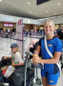 Lentokentällä oli myös Suomen joukkueen nuorin kilpailija; vasta 13-vuotias  Heili Sirviö. Hän sijoittui Olympialaisten park-skatingin finaalissa hienosti viidenneksi!  Kävin juttelemassa isä Fredun  ja äiti Annin kanssa ja luvan kanssa otimme parit valokuvat. Nuori Heili Sirviö vaikutti käsittämättömän valovoimaiselta, hän on luontainen esiintyjä.  Siskonsa  Miila oli samanlainen hymytyttö:-).