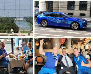 Kulttuuriakin oli; Versaillesin palatsi ja sen puutarha ovat katsomisen arvoiset.  Hevosiin liittyvät lajit kisattiin Versaillesissa (kuva jossa suojaverkkoa).  Kuuluisalle Riemukaarelle piti tietysti kavuta.  Ydinkeskustan Chams Elysees Avenuella maksoi täsmälleen sama olut 20 €, mikä meidän lähiössä oli 5 €…Onneksi  hämeenlinnalainen tuttavapariskunta tarjosi, kun budjettimatkalaisina rupesimme empimään😊.  He olivat ajanteet autolla Nizzan lähellä sijaitsevasta lomapaikastaan Pariisin kisoja katsomaan.  Ovat kovia HPK-faneja, mutta sopu säilyi hyvin!