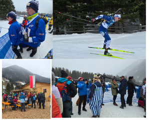 Anterselvan ampumahiihtokisoissa oli kyllä ylivoimaisesti paras tunnelma!  Paikalla oli noin 18 000 ihmistä.  Tuhansia ihmisiä vetävät jättiteltat, joissa nahkahousubändi alkoi soittamaan ja villitsemään yleisöä jo 2,5 tuntia ennen kisan alkua.  Yleisöllä oli paljon kannustusasuja ja muuta rekvisiittaa.  Norjalaiset erottautuivat porukasta:  värikkäät asut, osalla sarvet päässä ja  rumpumies tai pari porukassa.   Olutta ja kuumaa viiniä myytiin myös ulos, vaikka korillisen sai kerralla mukaan. Pullot avattuna tai alumiinilaseissa.  Muutaman kerran nähtiin kun olutlaatikon kantaja otti mäkisen rinteen liukkailla lipat ja avatut oluset värjäsivät lumihangen uudella sävyllä. Ja kaverit määräsivät uudelleen puolen tunnin hakureissulle…