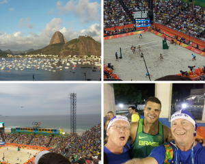 Rion kisatapahtumiin otimme lentävän lähdön, kun vuorokauden matkustamisen jälkeen menimme heti samana iltana Cobacabanalle rakennettuun Olympialaisten upeaan beach volley-mestaan.  Erilainen kisatapahtuma!   Sotalaiva ajeli edestakaisin rannikolla ja helikopterit pörräsi ilmassa. Tiskijukka soitti menomusaa ja kommentoi kilpailijoita, myös urheilijoiden ulkonäköä estottomasti.  Todellinen paikallisten laji!   Meidän lisäksi tavattiin katsomossa vain 1 muu suomalainen.  Silloinen Veikkauksen pääjohtaja Juha Koponen.  Kävimme Riossakin seuraamassa useita eri lajeja, eniten yleisurheilua, mutta sen lisäksi monia muita lajeja mm.  golfin finaalipäivää. Riossa näimme millainen todellinen supermegastara Usain Bolt oli!  Paikalliset sekosivat katsomossa!