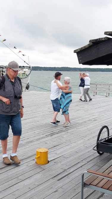 Joukostamme löytyi varsinainen parkettien partaveitsikin, sillä Juha pyöritti useammatkin piruetit illan aikana. Myös useat muutkin kävivät laiturilla, kuin laivallakin pyörähtämässä tanssin merkeissä.
