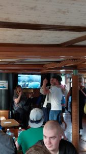 Itse laivamatka oli jo kokemus hyvän elävän musiikin tahdissa laivan herkkuja nautiskellen. Solistin takana myös live kuvaa tuli isolle näytölle laivan konehuoneesta. WC:ssä käydessä konehuoneen kuumuden hyvin huomasikin sillä miesten wc ainakin oli kuuma kuin sauna ja naisten kertoman mukaan heillä oli yhtä kuumat oltavat.